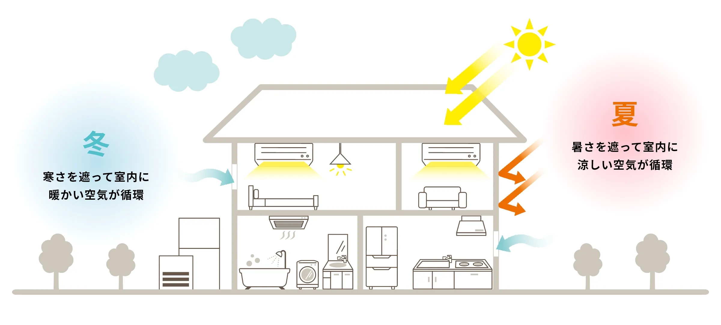 断熱等級6 c値 0.28cm2/m2、耐震等級3の高性能住宅。