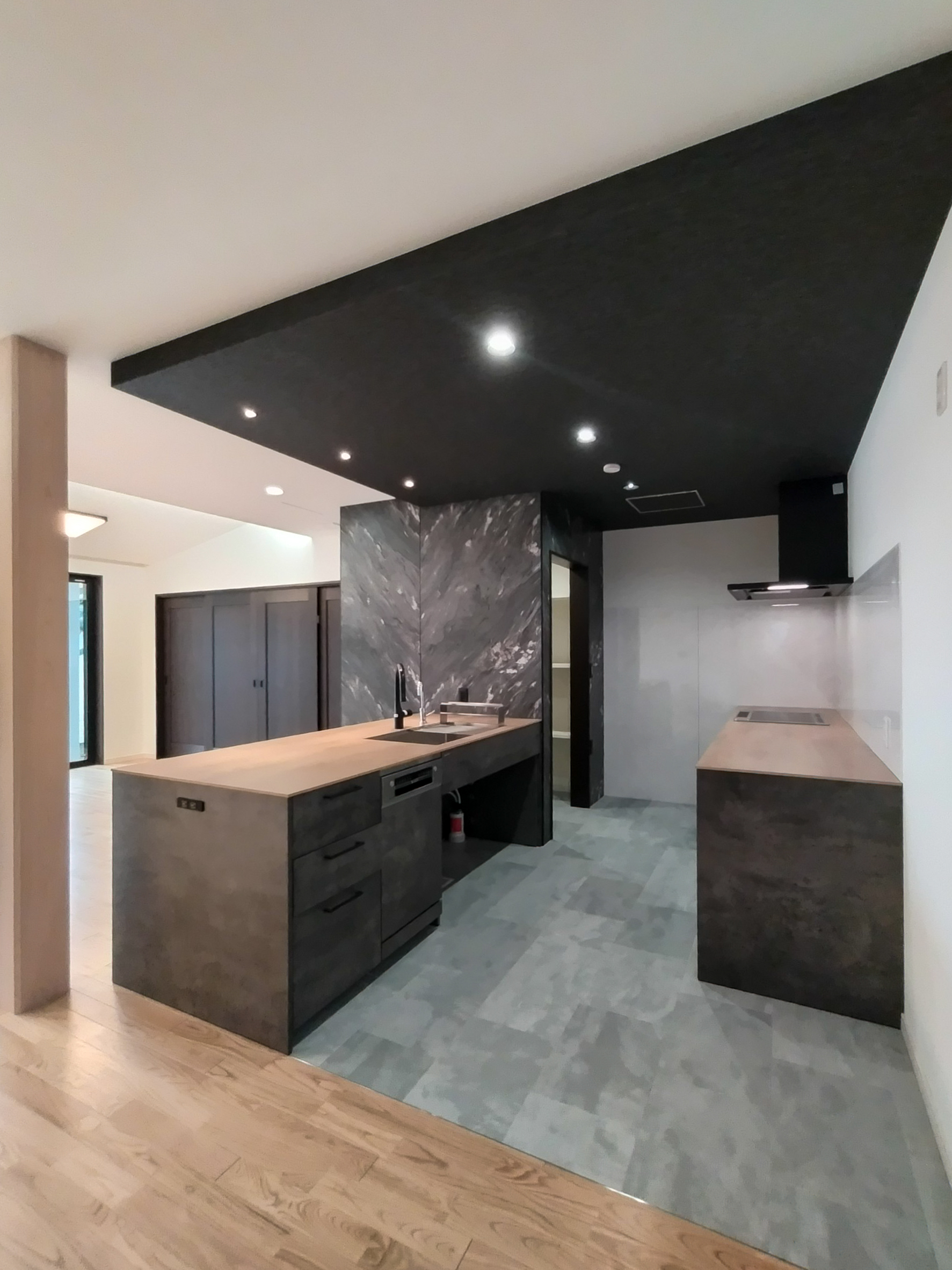 奥のパントリーは車椅子が入れるスペースを確保