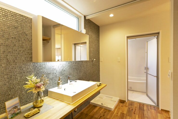玄関に隣接した洗面。帰宅後すぐに手を洗えます。