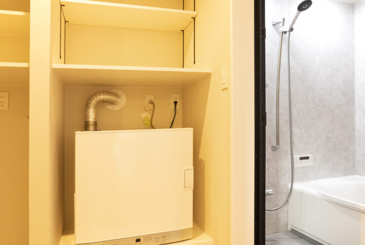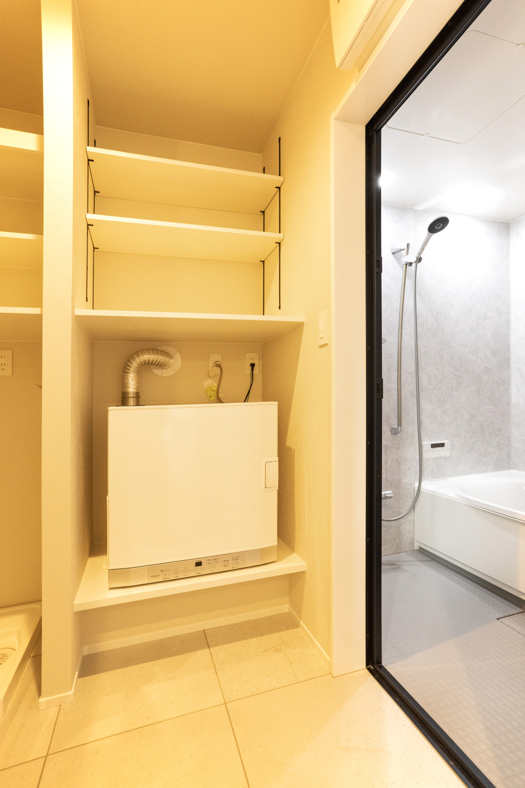 脱衣洗濯室。ガス衣類乾燥機乾太くんを採用しました。