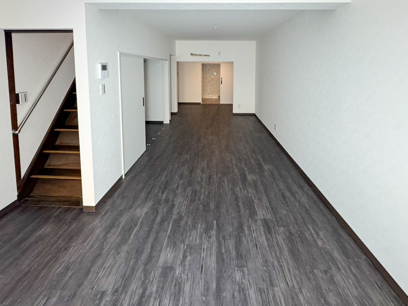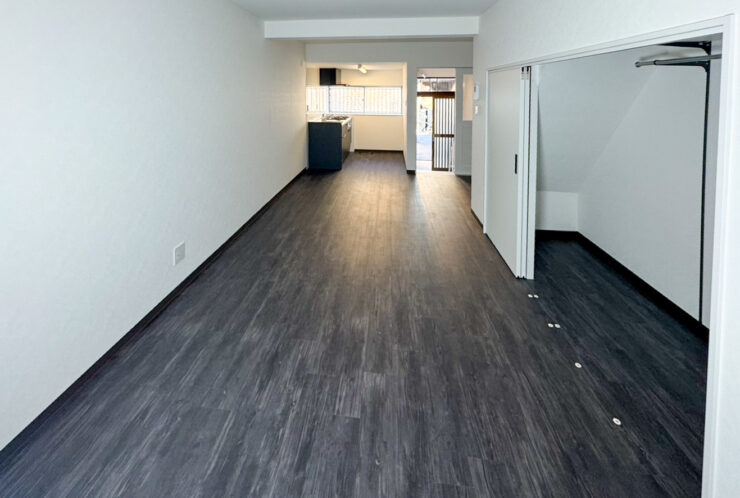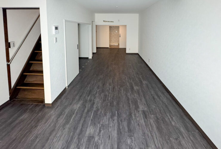 元々はキッチンとリビングが壁で仕切られていましたが撤去してキッチンの位置を変更し同一空間としました。
