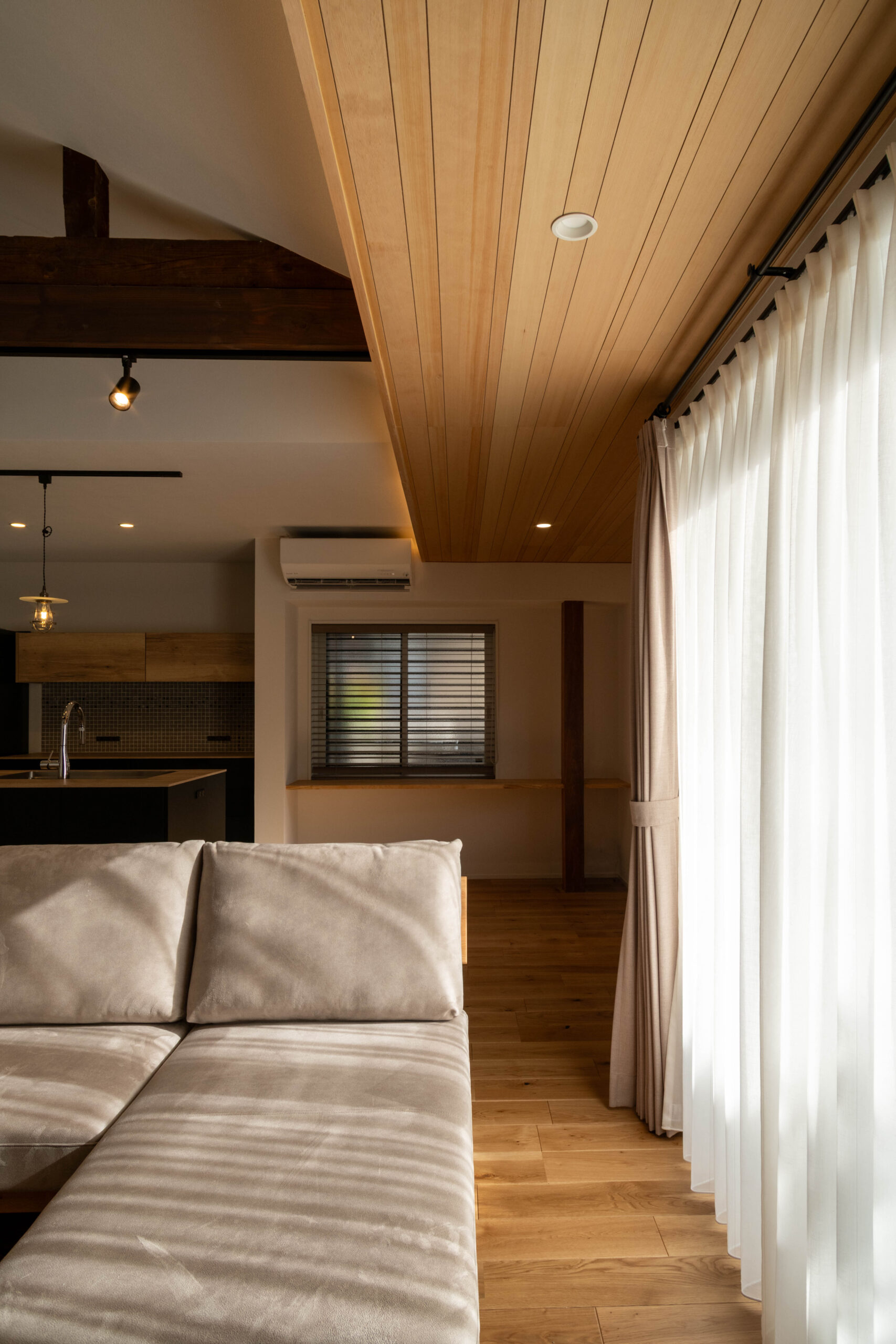 伸びやかで美しい木目の木質天井。
