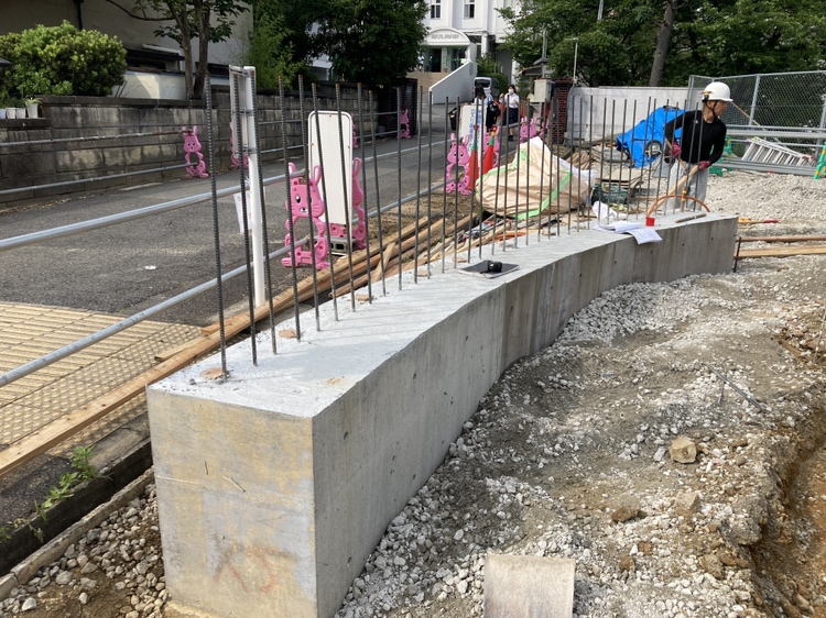 次に鉄筋が出ているところにレンガを貼っていきます。