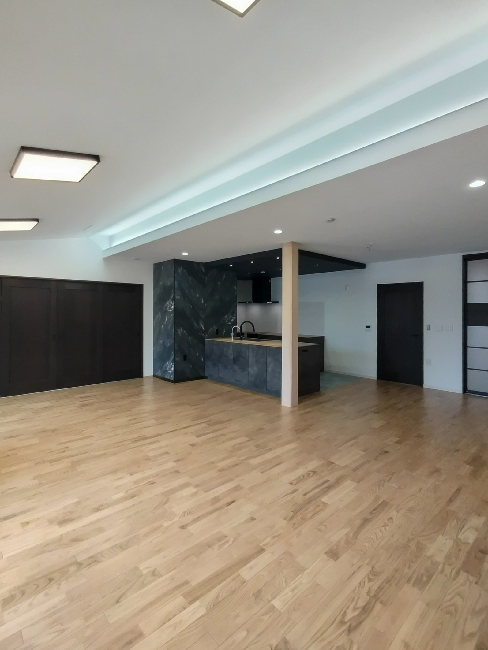 LDKは全体的にゆとりのある広さを確保し、車いすでも動きやすい空間設計としています。日常の動線にも配慮し、ご家族が快適に過ごせる住まいとなりました。